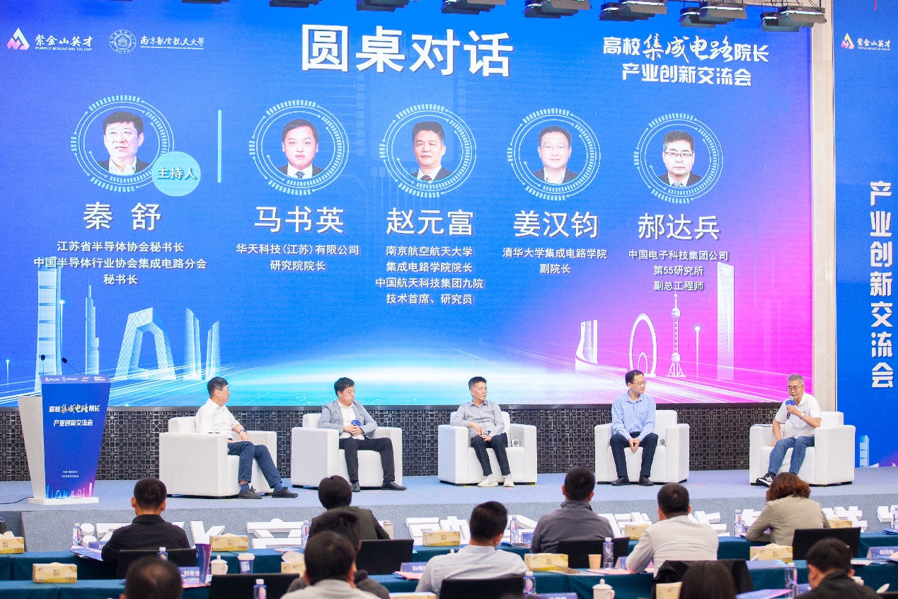 圆桌对话环节由江苏省半导体协会秘书长、中国半导体协会集成电路分会秘书长秦舒主持,我校188体育平台官网 院长,中国航天科技集团九院技术首席赵元富,清华大学188体育平台官网 副院长姜汉钧,华天科技(江苏)有限公司研究院院长马书英,中国电子科技集团有限公司第55研究所副总工程师郝达兵等围绕“深化产教融合,赋能集群发展”主题开展深度讨论。随后召开“集成电路产业创新赋能交流会”。