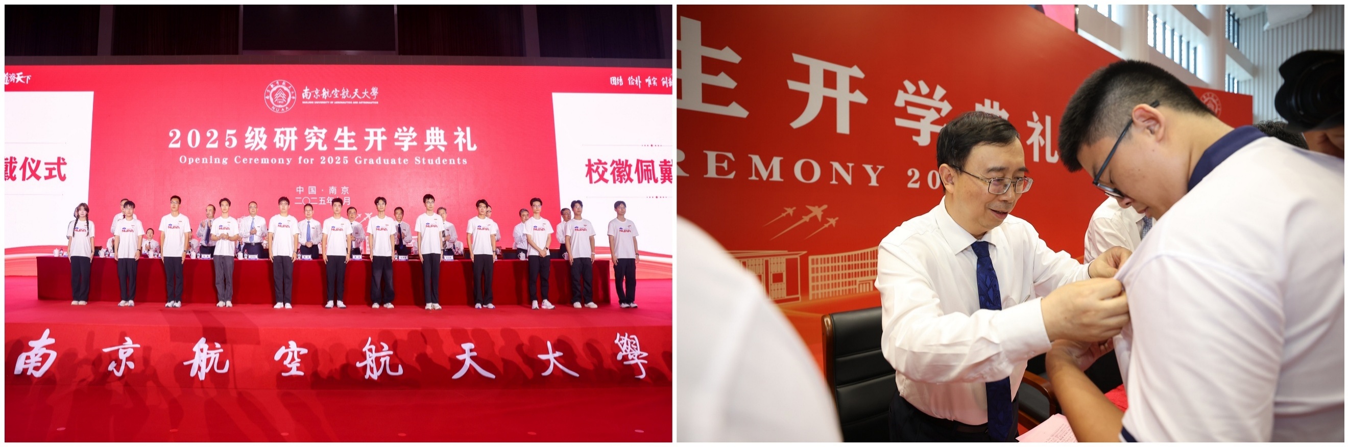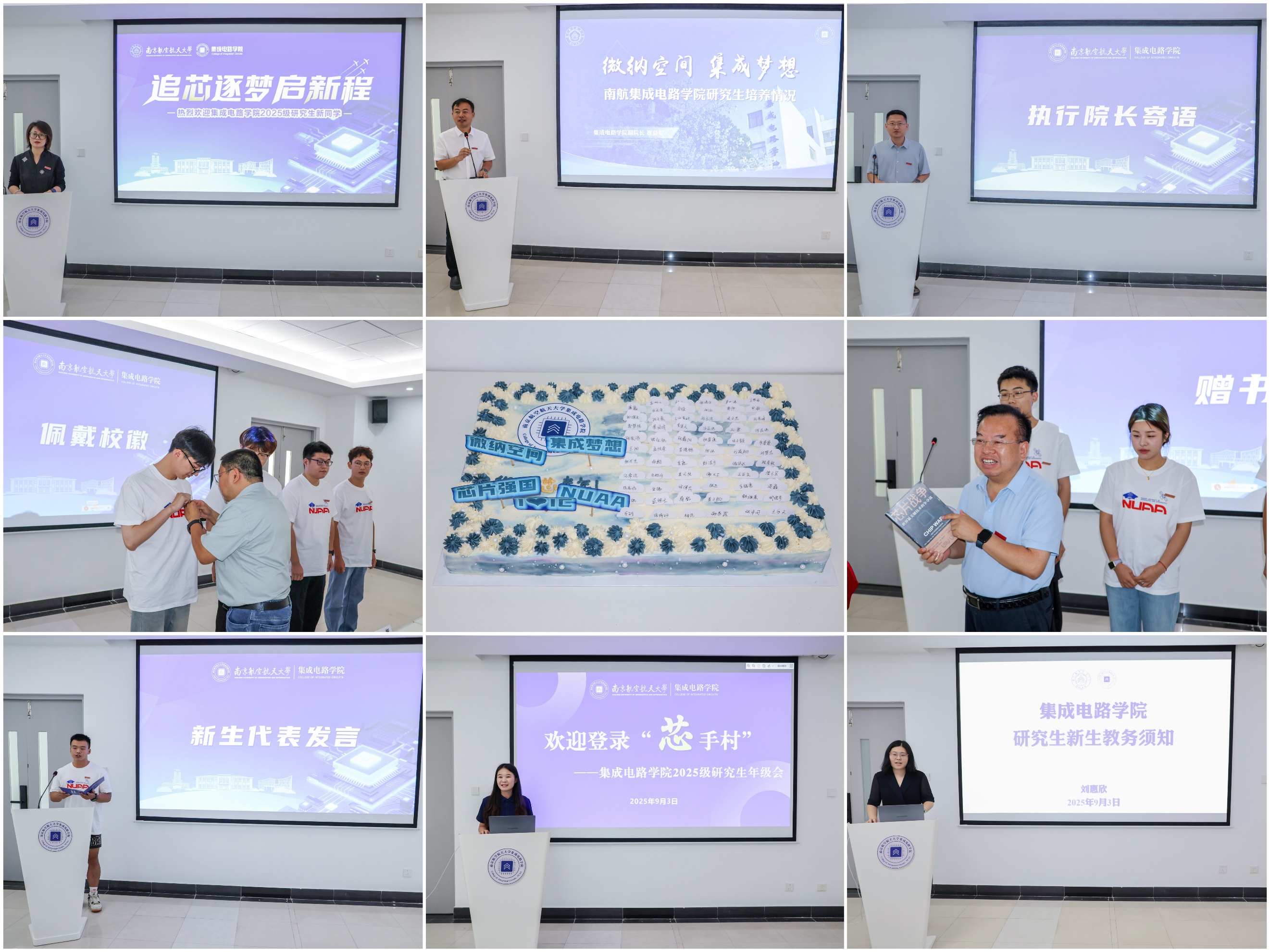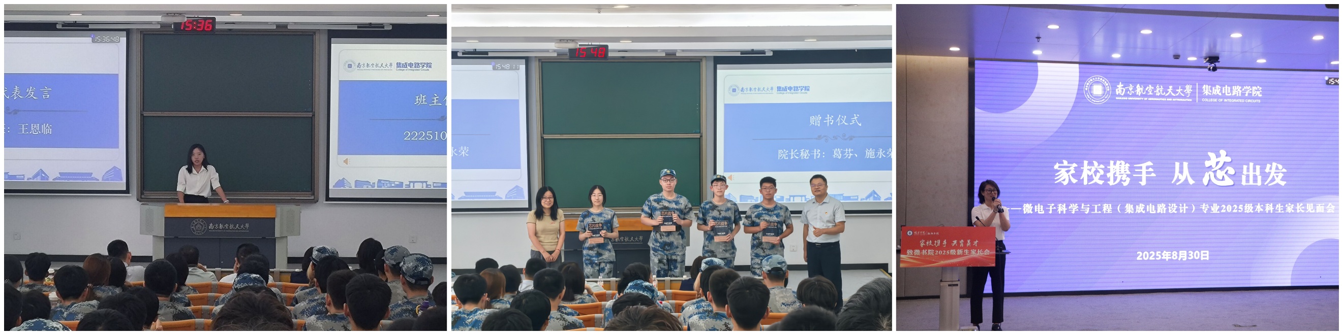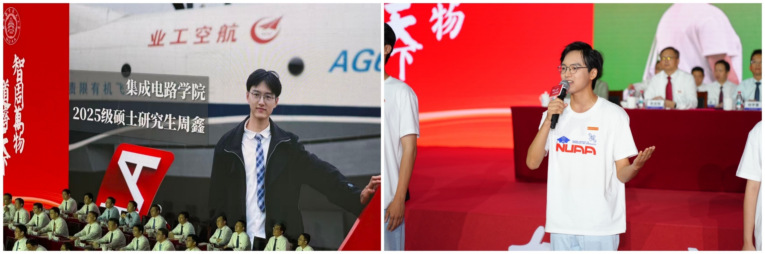 在学校2025级新生开学典礼上,188体育平台官网 研究生学生代表周鑫上台发言,展现集成电路学子的思考与风采。张正、王子杰同学作为新生代表上台佩戴校徽,新一代南航“芯”青年正式启航。