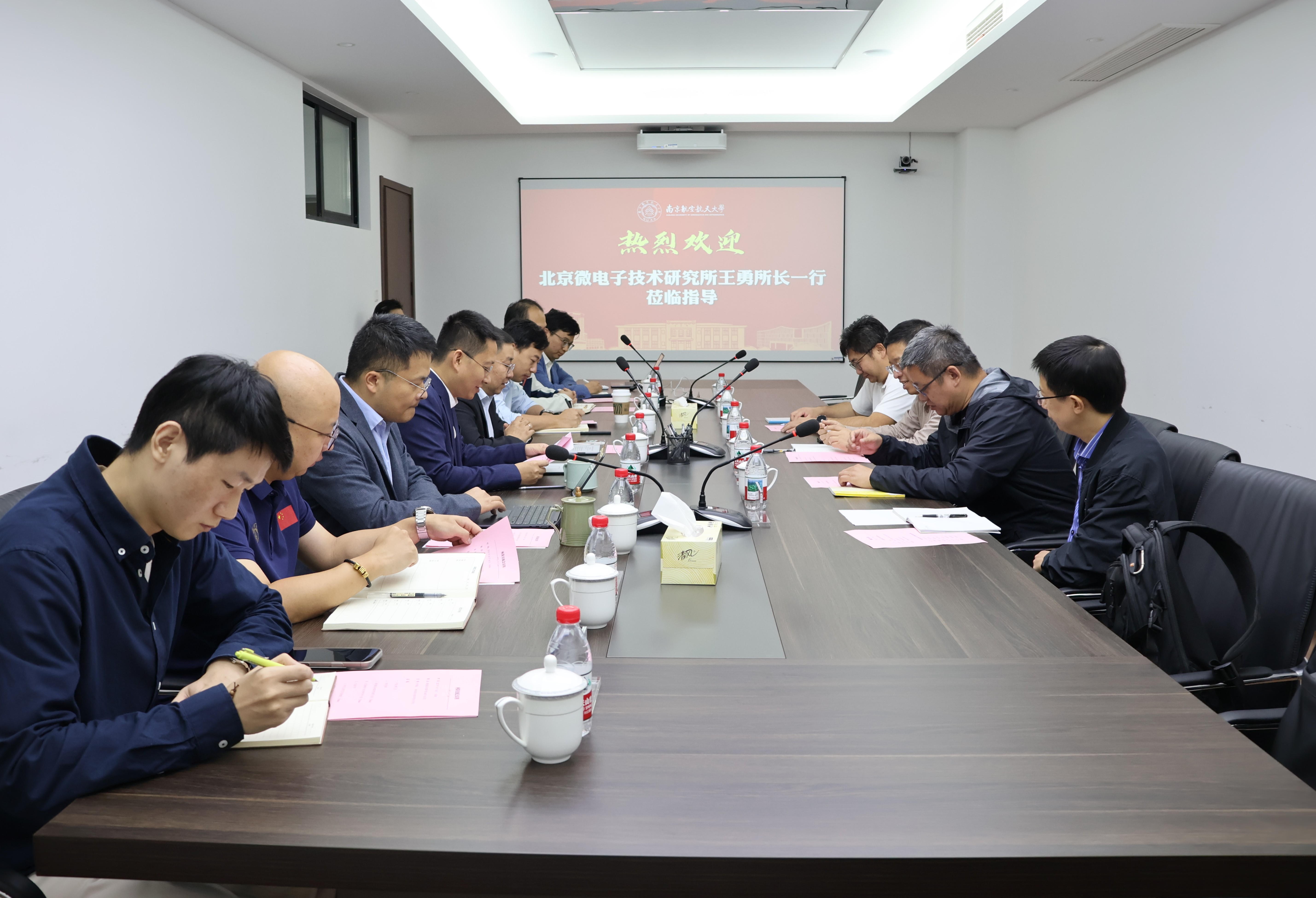 近日,北京微电子技术研究所所长王勇一行来188体育平台官网 调研交流。体育平台 党委书记黄彬、执行院长刘伟强、副院长崔益军、院长助理施永荣及部分教师代表参加此次交流活动。会议由刘伟强主持。