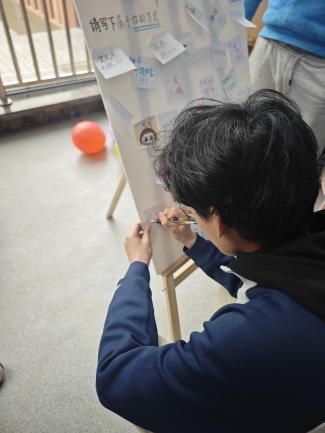 在天目湖校区东篱苑二楼餐厅门口,活动同样精彩纷呈。在“爱自己的100种方式”kt板前,同学们通过书写、绘画或粘贴便利贴,分享了诸多实用而温暖的自我关怀心得;在“勇气大爆发”区域,同学们写下真诚鼓励与内心期盼,一字一句传递着直面挑战的勇气;“情绪小卖部”区域,同学们将烦恼投入“情绪收纳箱”,并通过兑换糖果与气球的仪式感,完成了一次情绪的释放与转换,收获一份轻松甜蜜的心情。
